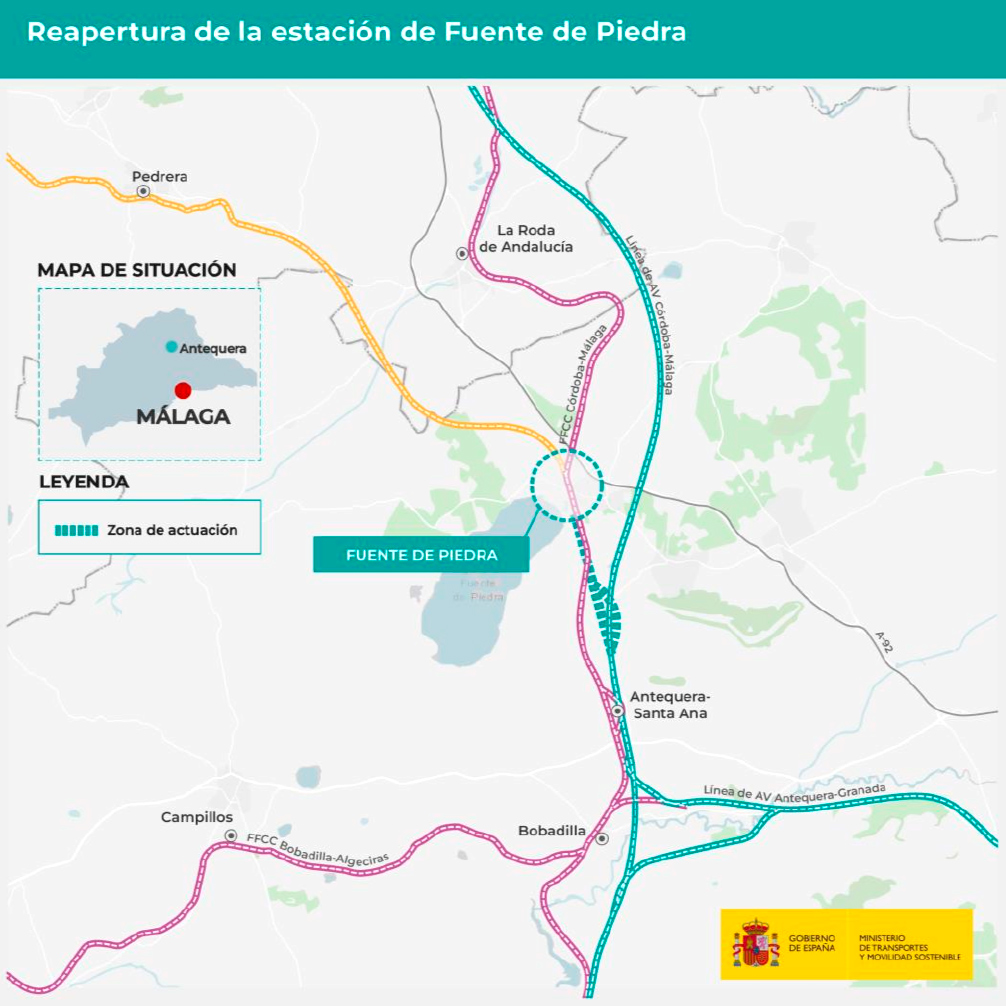 El consorcio integrado por las sociedades Fulcrum, Planificación, Análisis y Proyectos y Tema Ingeniería, con la que el Ministerio ha formalizado el contrato por 586.399,28 euros, IVA incluido, elaborará los estudios informativos para la reapertura de la estación de Fuente de Piedra, en la provincia de Málaga; el nuevo apeadero o estación en Córdoba, cuya tipología será determinada por el propio estudio; y la reapertura de las estaciones de Montoro y Almodóvar del Río, en la provincia de Córdoba.