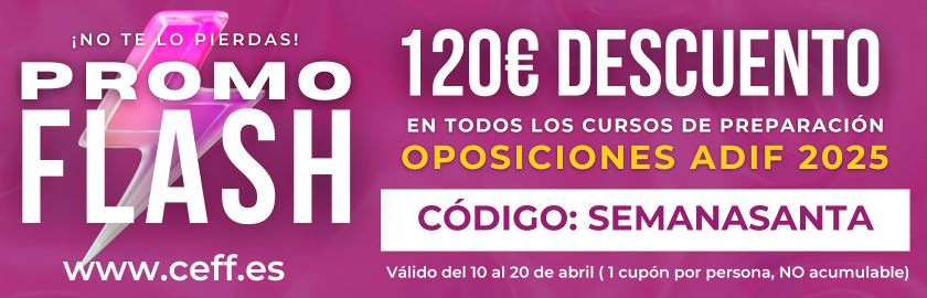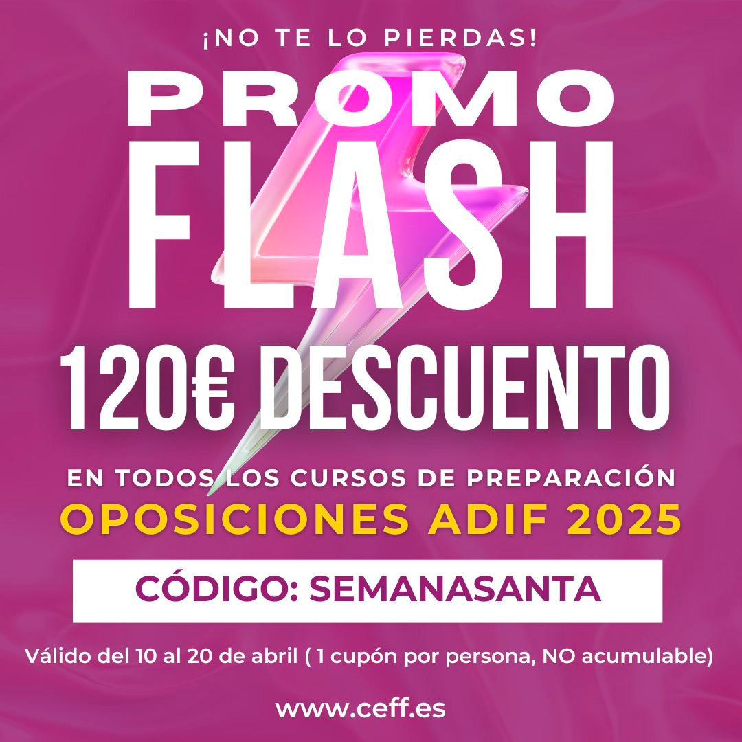 Hasta el día 20 de abril los alumnos que deseen prepararse en el CEFF para las oposiciones a Adif se pueden beneficiar de un descuento de 120 € como oferta especial de Semana Santa.
