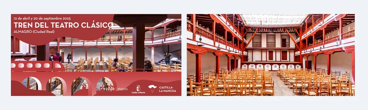 Esta Semana Santa la operadora Renfe pone en servicio alguno de sus trenes temáticos como por ejemplo, mañana sábado el Tren del Teatro Clásico para Almagro con salida de Madrid Chamartín Clara Campoamor a las 8,55 h o 9,10 h desde Atocha Cercanías llegando a la terminal de Almagro a las 11,20 h. la vuelta es desde la ciudad manchega a las 19 h.