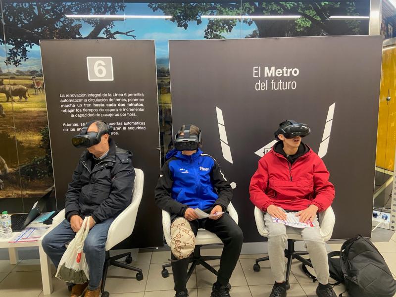 Además, como parte de la iniciativa, se ha habilitado de manera itinerante un estand audiovisual en los vestíbulos de las estaciones por el que ya han pasado más de 1.500 usuarios quienes, a través de unas gafas de realidad virtual, han realizado un viaje inmersivo por la futura L6. Este trayecto simulado comienza en la estación de Cuatro Caminos y termina en la de Argüelles y con él el usuario puede conocer novedades ya existentes y otras que serán realidad en apenas dos años.