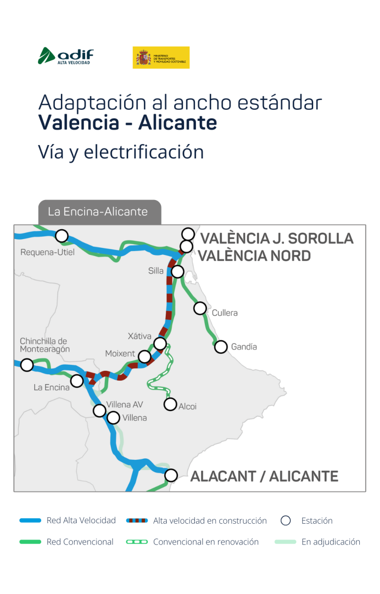 Además, la renovación de la línea, que permitirá que circulen trenes de distintos anchos y propulsión eléctrica, repercutirá en una mejora de los servicios de media distancia Villena-Alicante y de cercanías Alicante-San Vicente de Raspeig, al reforzarse al fiabilidad y capacidad de la vía.