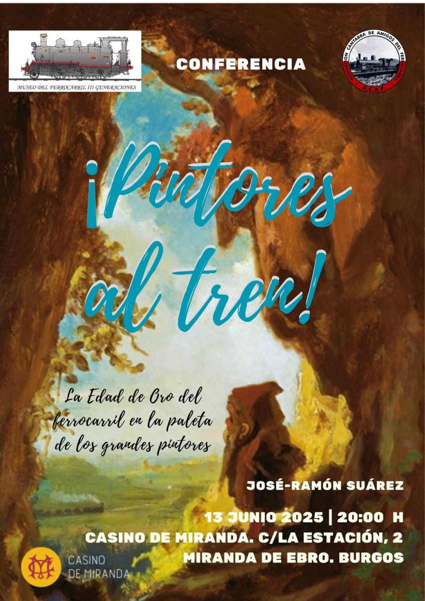 Esta tarde tendrá lugar la conferencia “Pintores al tren” a cargo de José Ramón Suárez. El acto se celebrará a las 20 h en el Casino de Miranda de Ebro englobándose dentro de las actividades del Museo del Ferrocarril III Generaciones. Colabora la Asociación Cántabra de Amigos del Ferrocarril.