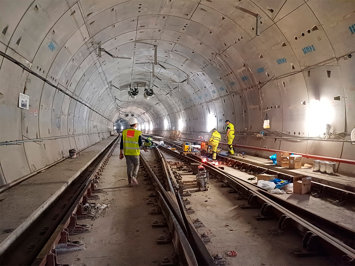 Además, se realizarán las soldaduras de vía en placa y el montaje de diversos elementos de la catenaria rígida. Se montará la señalización dinámica de evacuación en el túnel, se instalarán revestimientos en ambas estaciones y se montará la iluminación normal y de emergencia en andén. Se actuará en el entresuelo, es decir, en el piso situado entre la planta 1 y la baja, con la colocación del solado y el montaje de acristalamiento y pasillos rodantes.