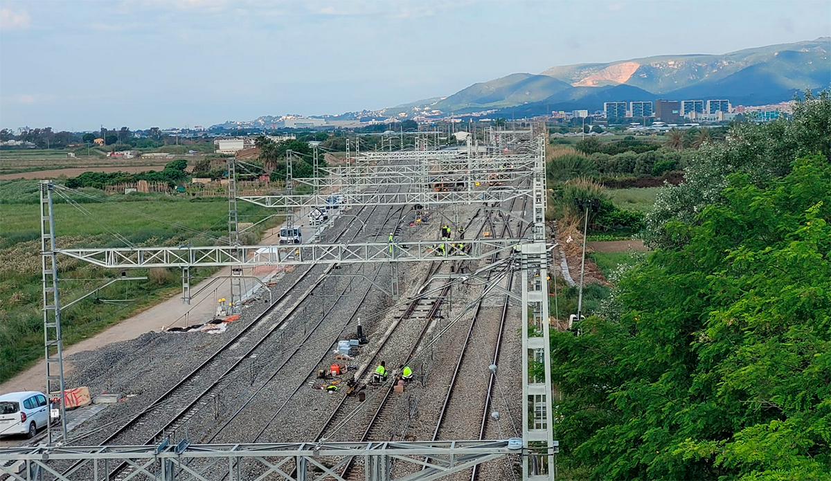 En el ámbito de la electrificación, se han realizado las cimentaciones, montaje de postes y pórticos de catenaria de la nueva plataforma de la vía 4, del trazado de la nueva vía general 2 y de las vías 1, 2 y 3 (ésta última, la vía actualmente en servicio para el acceso al aeropuerto). Además, se ha renovado el hilo de contacto y sustentador.