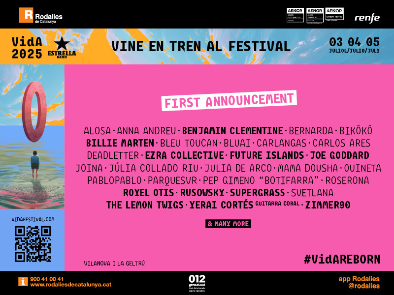 Entre el 3 y el 5 de julio, Vilanova y la Geltrú acogerá la 11.ª edición del Festival Vida 2025, y Cercanías de Cataluña será, un año más, la mejor opción de transporte para los asistentes.
