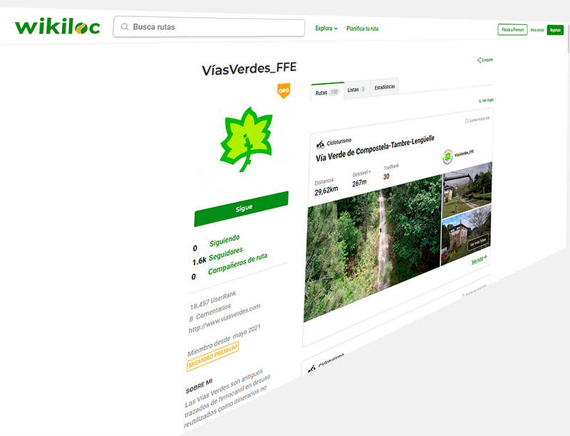 La Fundación de los Ferrocarriles Españoles y Wikiloc han firmado un acuerdo de colaboración que permitirá aumentar en dicha plataforma web y aplicación móvil la visibilidad de las vías verdes españolas, e impulsar así la práctica del cicloturismo y el ejercicio físico a través de las vías verdes, unas rutas singulares con ADN ferroviario. Esto fomentará el conocimiento y uso de las vías verdes entre los millones de usuarios de la plataforma.