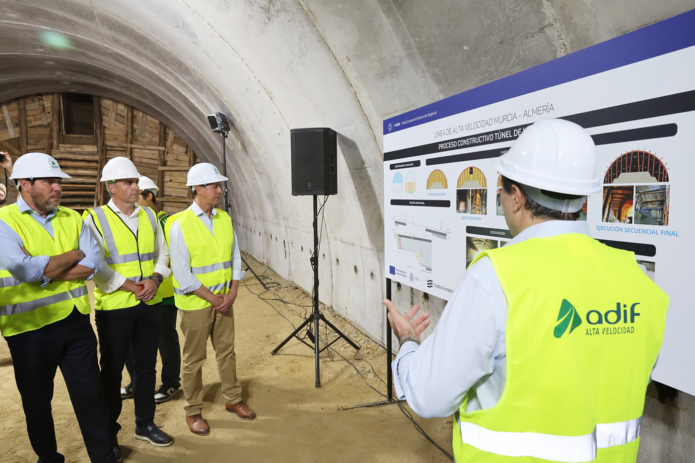 El ministro de Transportes y Movilidad Sostenible, Óscar Puente, ha presidido el cale realizado por las obras del túnel de Viator, en el tramo Nijar-Río Andarax, donde se ha completado la excavación de su mitad superior, a lo largo de 878 metros, y que supone una infraestructura clave del Corredor Mediterráneo y de la futura Línea de Alta Velocidad Murcia-Almería, donde el Ministerio destina 3.600 millones de euros.