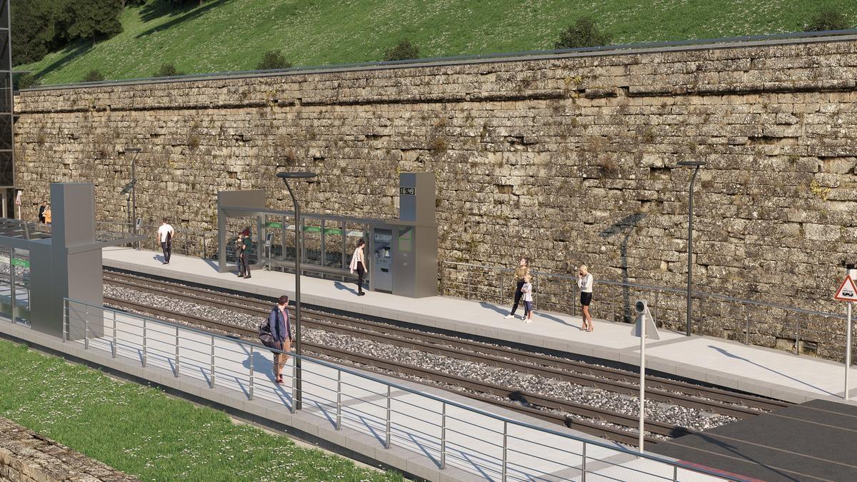 La nueva parada se configura mediante dos andenes laterales, de 30 metro de longitud cada uno, conectados por dos cruces peatonales. El andén del lado ría tendrá una anchura constante de 3,5 metros. El andén del lado montaña tendrá anchura variable entre 4,4 y 4,9 metros para facilitar el acceso al mantenimiento del bloque técnico.