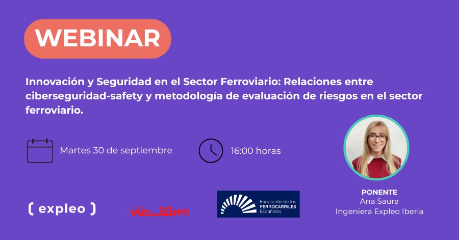 Bajo el subtítulo “Relaciones entre ciberseguridad-safety y metodología de evaluación de riesgos en el sector ferroviario” este encuentro online tendrá lugar el próximo martes 30 de septiembre a las 16 h. La ponente será Ana Saura, ingeniera de Expleo Iberia.