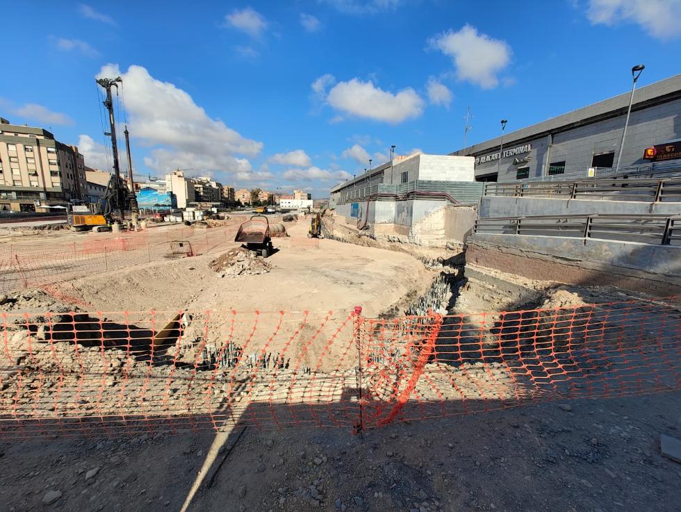 Actualmente la ejecución de los pilotes-pantalla que definen el contorno de la estación se desarrolla a lo largo del tramo más cercano a las vías de la estación de Adif y en una línea paralela a estas. Una vez ejecutados, podrá comenzarse con la excavación general del recinto y tras excavar ‘el cajón’, las obras avanzarán con la construcción del túnel bajo la avenida que dará continuidad a la infraestructura ya construida, que parte de la estación de Luceros, mientras que de manera paralela se construye la nueva nave de catering de Adif.