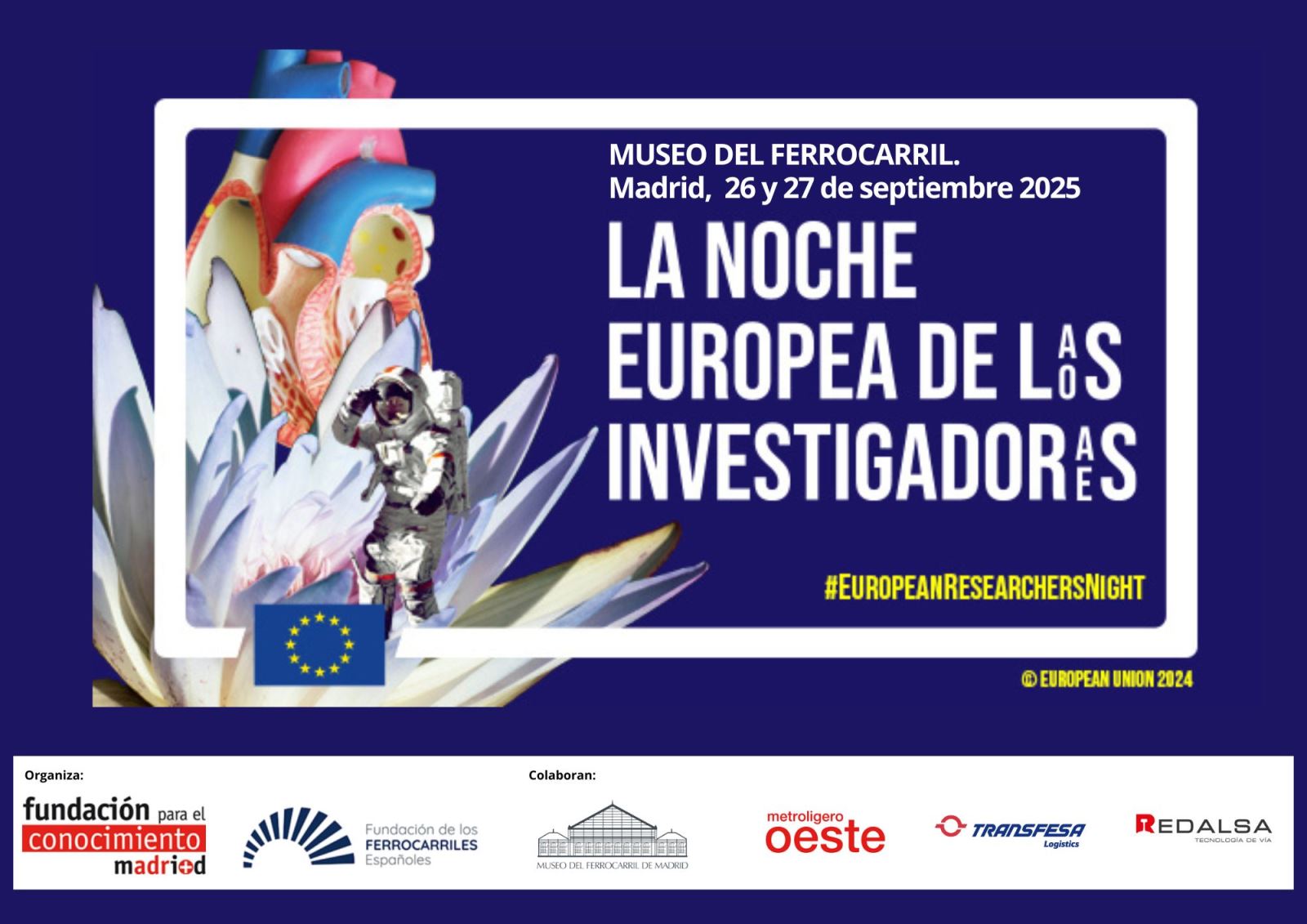 La Fundación participará en la XVI Noche Europea de los Investigadores de Madrid. El 27 de septiembre se desarrollarán actividades en el Museo del Ferrocarril de Madrid sobre algunos de los retos de la innovación en el ferrocarril: la sostenibilidad, la seguridad y las mercancías.