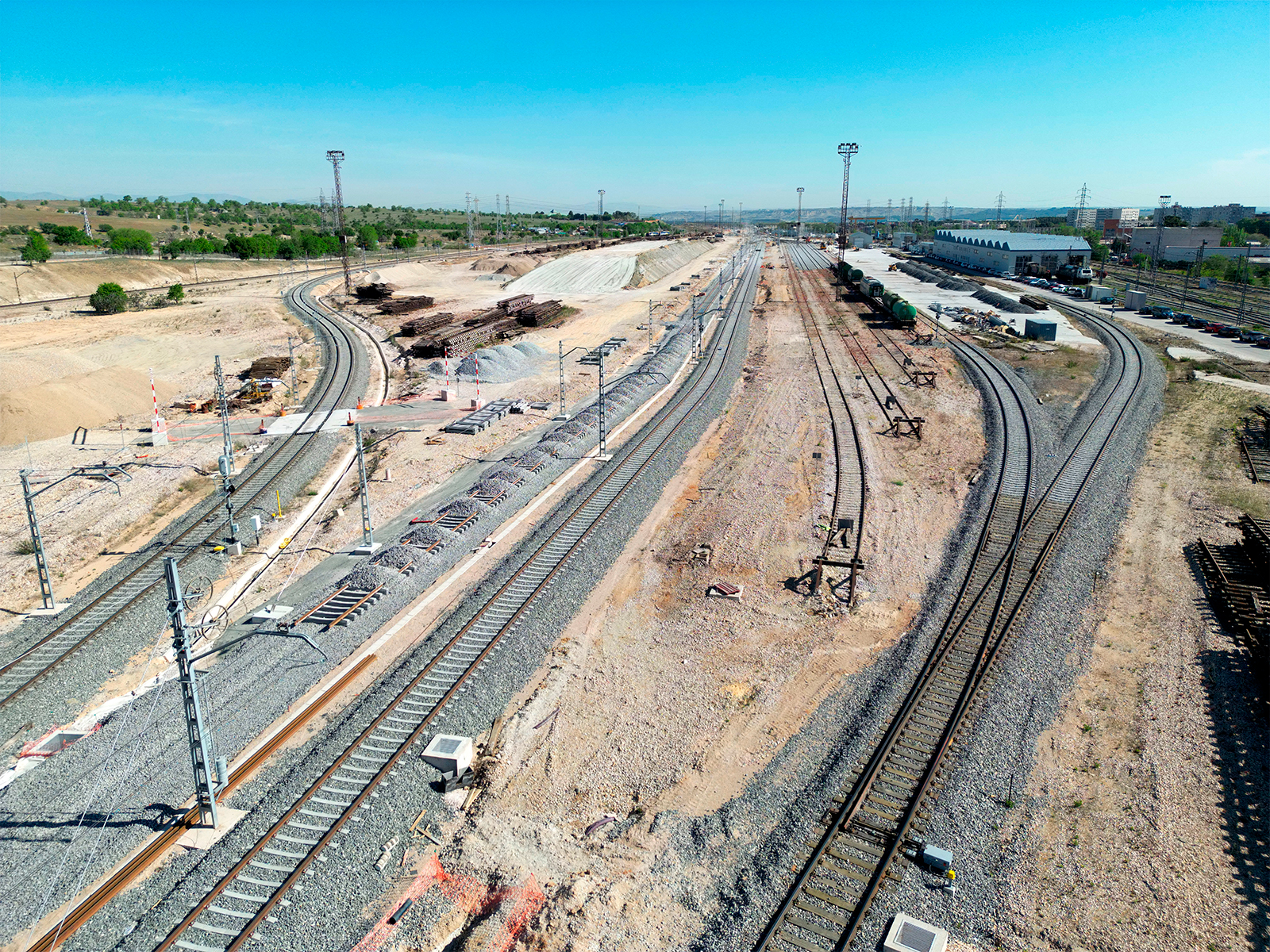 Además, Adif trabaja en la urbanización y los viales de la nueva zona intermodal, con un circuito para el acceso desde una nueva glorieta en la M-214, carga y descarga de los camiones, controles y aparcamiento para vehículos pesados y ligeros.