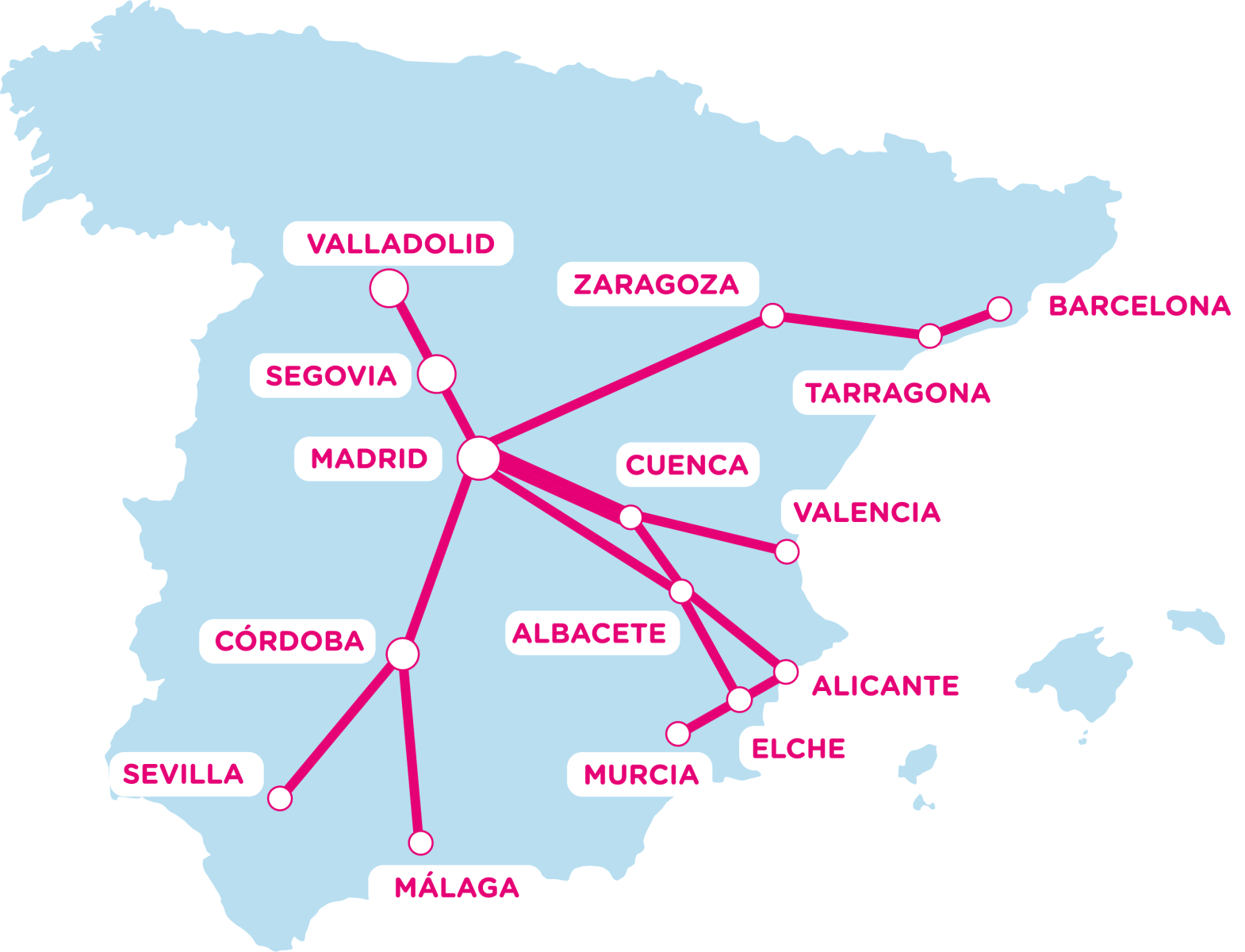 A partir del 14 de diciembre Ouigo pondrá en marcha cuatro nuevas frecuencias -una ida y vuelta adicional diaria- entre Madrid y Barcelona, Madrid y Sevilla, Madrid y Málaga y Madrid Murcia.