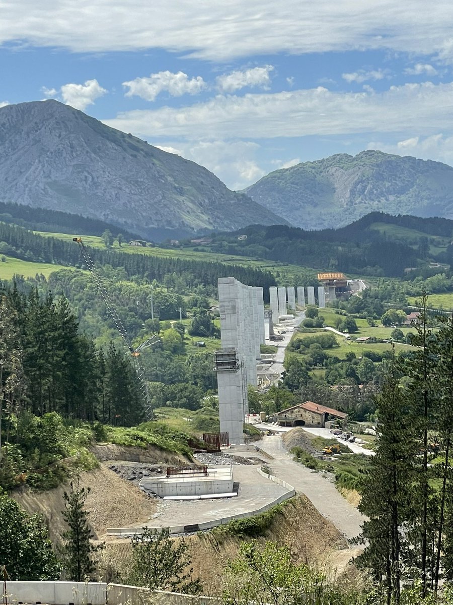 “Desde el estribo 2 hasta la pila P-11 se está empleando una autocimbra superior para ejecutar el tablero, idónea para esta configuración, pues resuelve los problemas de acceso a pilas elevadas al trabajar directamente sobre la máquina” informa Tylin. Además, indican que en el tramo también se han ejecutado los Viaductos de Lanebera, Solatxo, Bolinbiskar, Urasalto y Sagasta, diferentes pasos superiores, obras de drenaje transversal e importante movimientos de tierra en desmontes y terraplenes previstos en el Proyecto de plataforma de esta línea de alta velocidad.