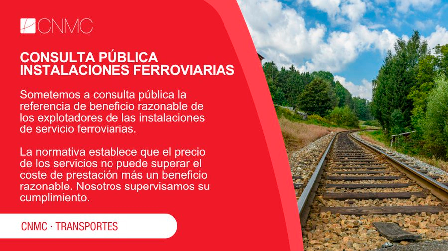 La Comisión Nacional de los Mercados y la Competencia (CNMC) ha publicado una audiencia pública sobre la referencia de beneficio razonable destinada a supervisar que los precios que las empresas ferroviarias pagan por los servicios en estaciones, terminales de mercancías y talleres cumplen la normativa.