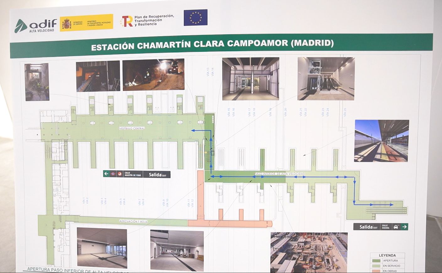 Desde ayer está en servicio el nuevo paso inferior construido por Adif Alta Velocidad en la estación madrileña de Chamartín–Clara Campoamor, que conecta la alta velocidad con el vestíbulo central de cercanías y el metro.