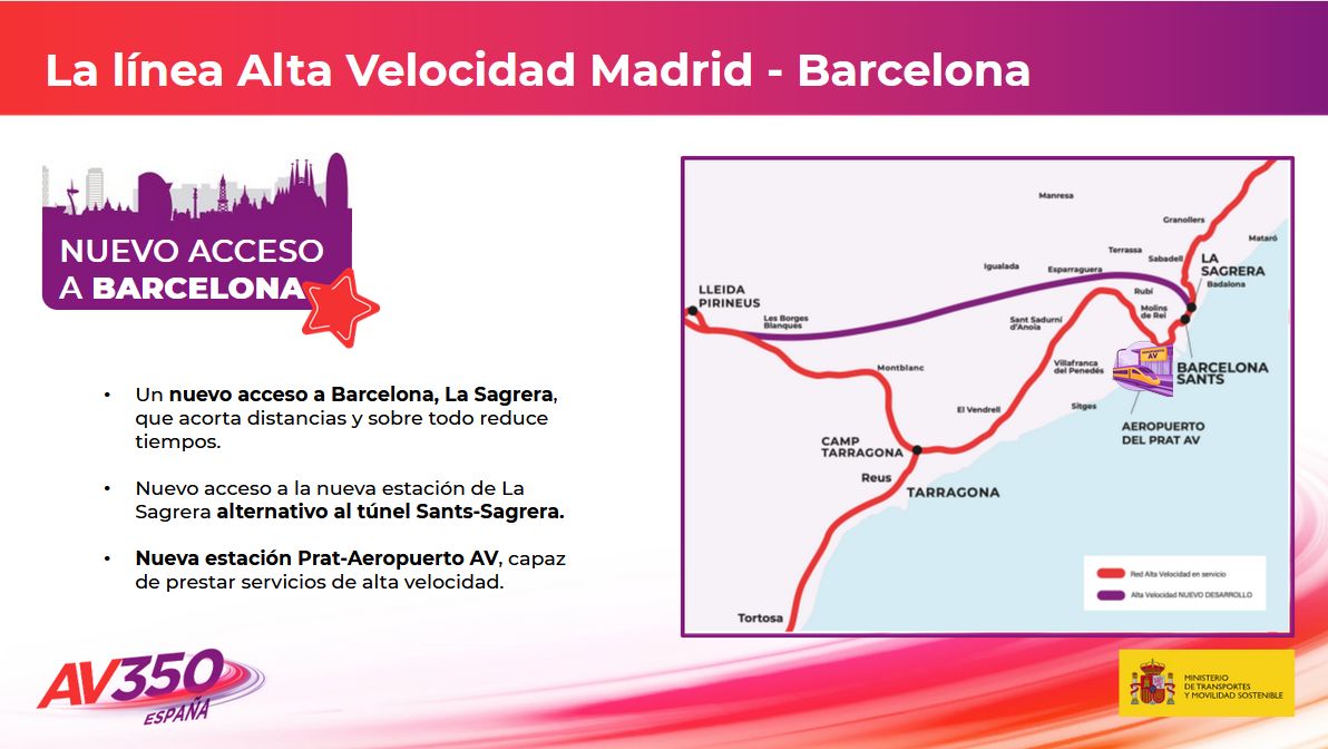 (18/11/2025) Puente informó de estos estudios en un Desayuno Informativo organizado por Europa Press, que tuvo lugar ayer Madrid. Uno de los estudios analizará en dos fases la mejora de la línea de alta velocidad Madrid-Barcelona-Frontera francesa y nuevas variantes de acceso a Madrid y Barcelona y, el otro, la viabilidad de la estación El Prat de Llobregat Alta Velocidad.