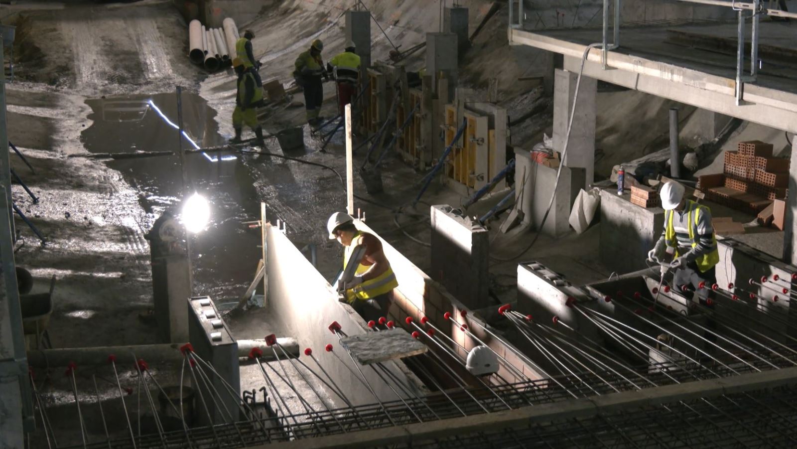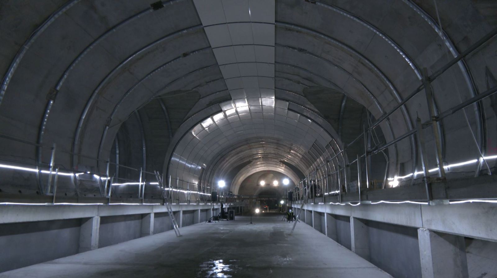 Con los trabajos de revestimiento de hormigón de la caverna recientemente concluidos, se ha dado paso a la construcción de una parte de los andenes y de la losa de vía, por la que circularán los trenes a partir del segundo semestre del próximo año.