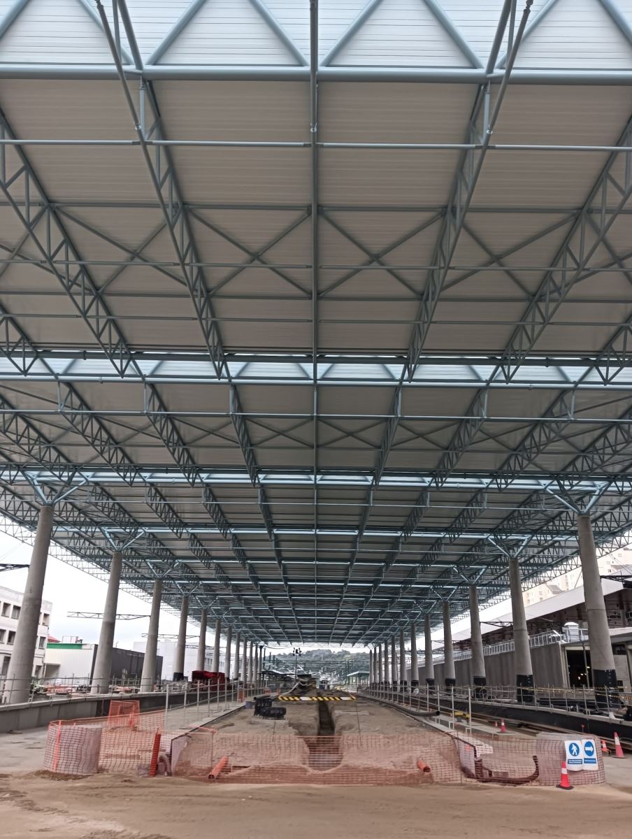 Además, se ha iniciado la instalación de la estructura metálica de la nueva sala de embarque, que se habilitará entre la antigua y la nueva marquesina.