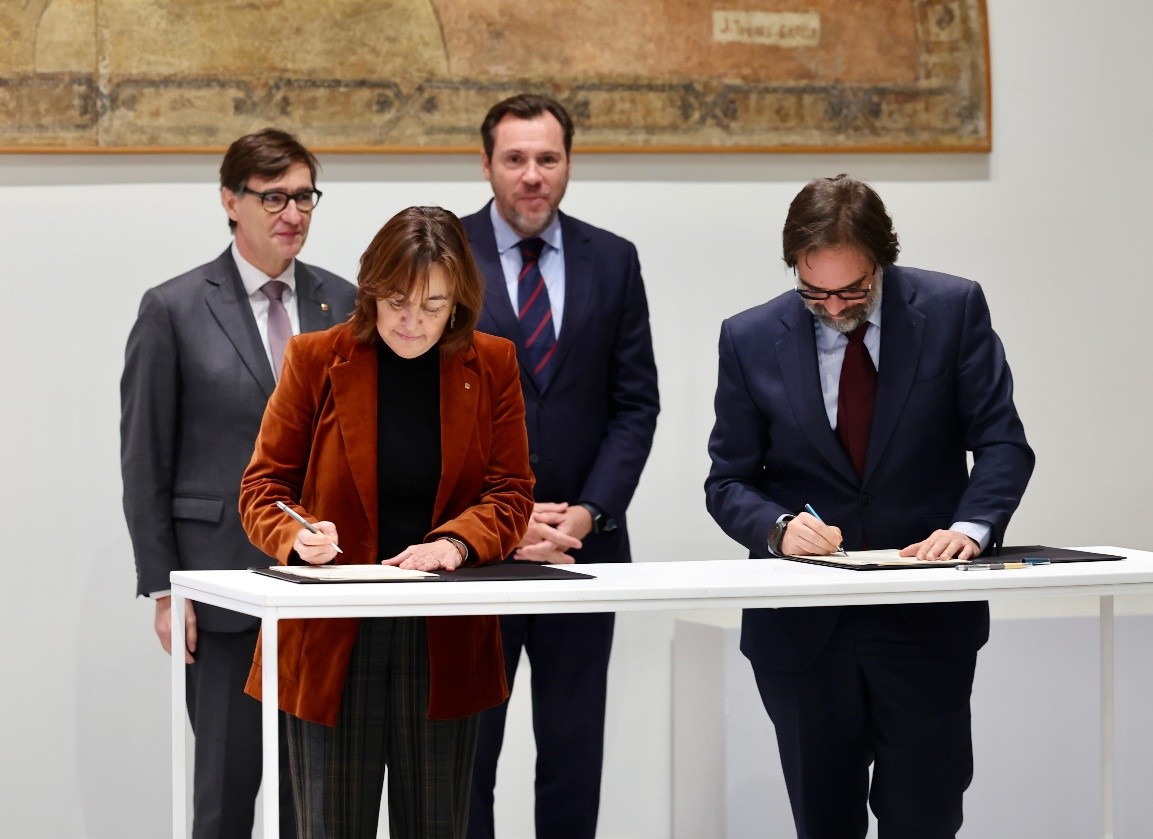 El ministro de Transportes y Movilidad Sostenible, Óscar Puente, y el presidente de la Generalitat de Catalunya, Salvador Illa, presidieron ayer en Barcelona el acto de la firma entre socios de la nueva empresa mixta que gestionará los servicios de Rodalies en Catalunya, y que registrará ante notario sus estatutos esta misma semana.