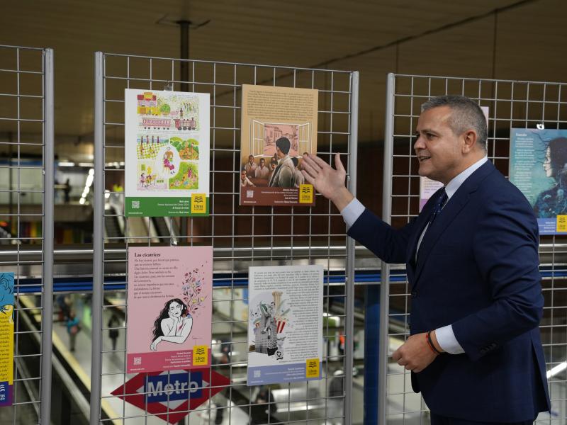 La Comunidad de Madrid celebra la 28ª edición de Libros a la Calle, una iniciativa destinada a fomentar la lectura entre los usuarios del transporte público de la región, mediante la instalación de 7.200 vinilos con fragmentos de veintiuna obras literarias en el interior de los trenes de Metro y en los autobuses urbanos e interurbanos.