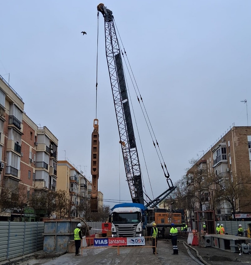 Las obras del tramo tres de la Línea 3 del Metro de Sevilla continúan avanzando con la ejecución de los muros de contención mediante pantallas