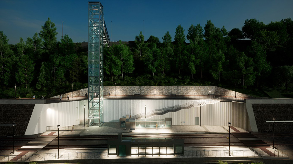 Para facilitar la conexión con Santutxu, se construirá un ascensor panorámico y una pasarela que desembarca en la Avenida Miraflores. Para garantizar la conexión con el barrio de La Peña, el ascensor dispondrá de parada en el paseo de los Caños. Además, el andén del lado monte conectará con el paseo mediante una escalera iluminada. El andén del lado ría conectará con el paseo mediante un nuevo camino. A petición del Ayuntamiento de Bilbao, el proyecto incluye también la cubrición de la pasarela Ibai-Eder, de La Peña.