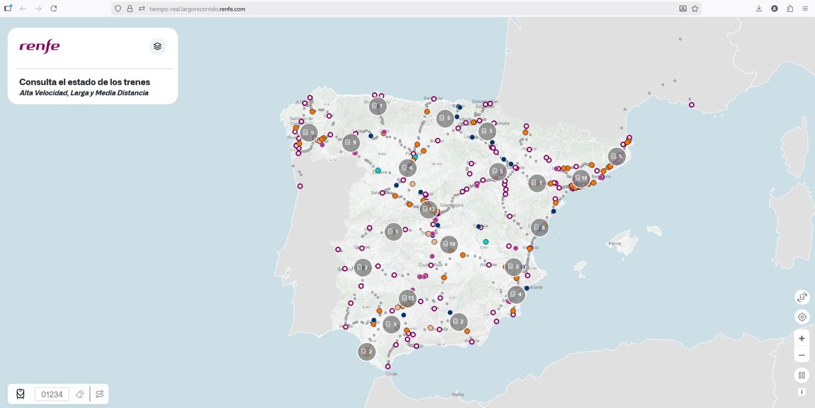 Permite a los usuarios conocer la ubicación exacta de los trenes de Alta Velocidad, Larga y Media Distancia
