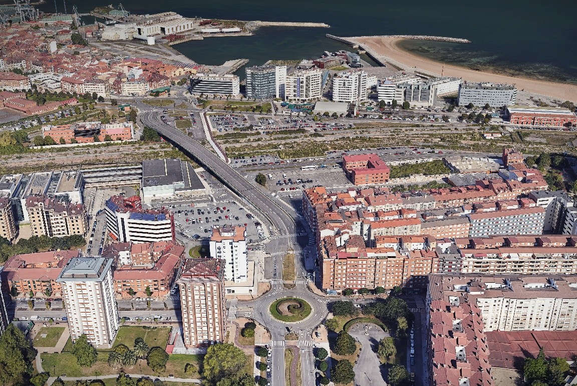La primera fase de las obras de la estación intermodal de Gijón comprende la eliminación del viaducto de la calle Carlos Marx, así como del paso inferior existente bajo la estructura, y su sustitución por un nuevo vial en superficie entre la avenida de José Manuel Palacio Álvarez y la glorieta de intersección de la calle Carlos Marx con la avenida de Portugal.
