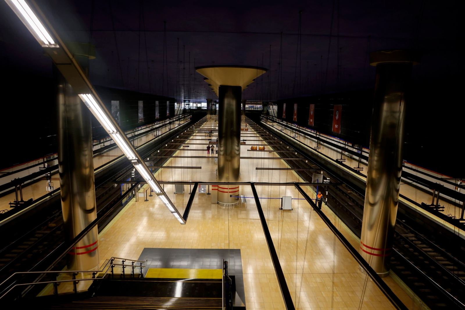 Metro de Madrid ha optado por esta solución, ya que facilita el movimiento de grandes afluencias de viajeros y evita congestiones propias de las escaleras convencionales. Por esta infraestructura pasan en torno a 18.000 personas en días de partido o concierto.